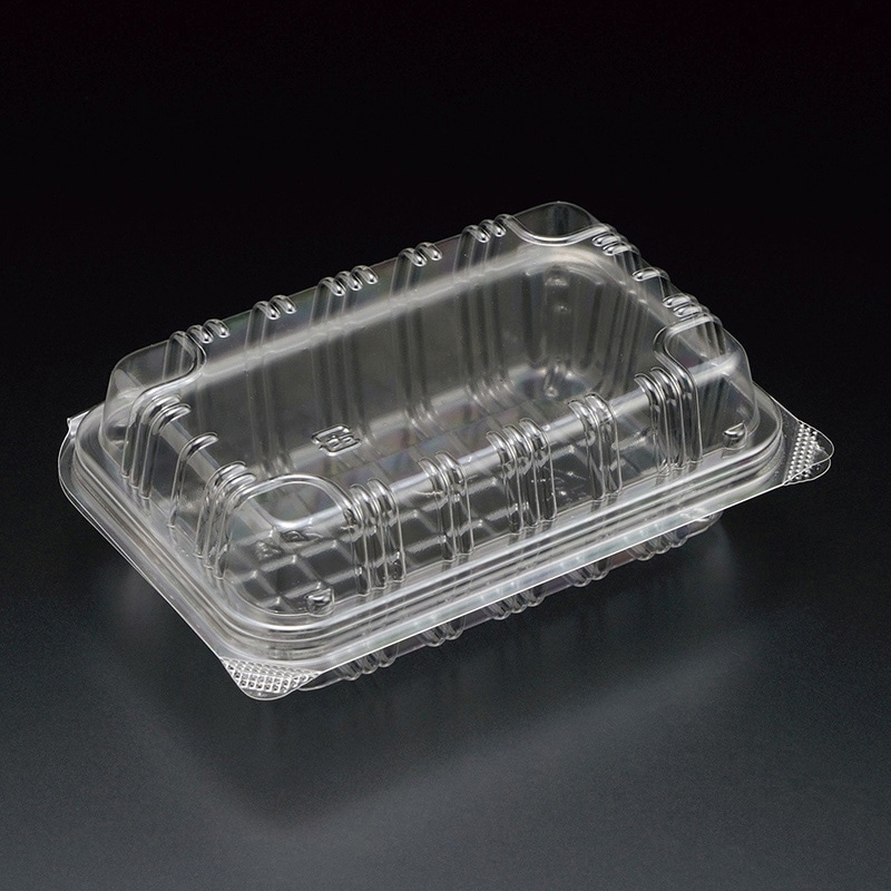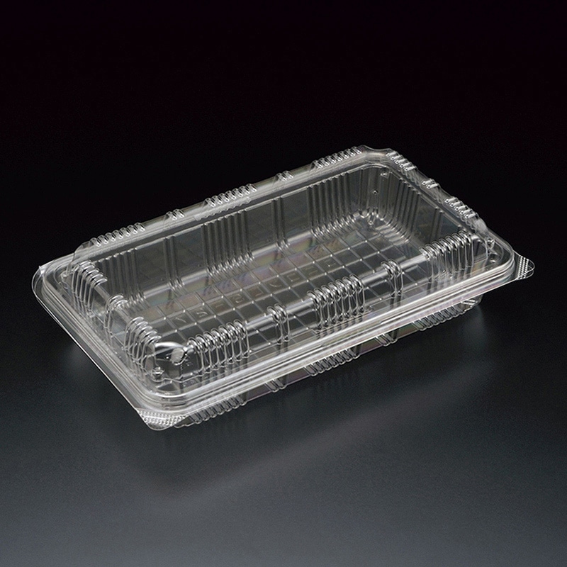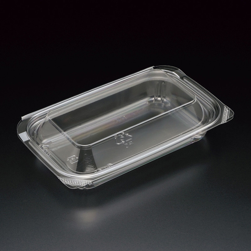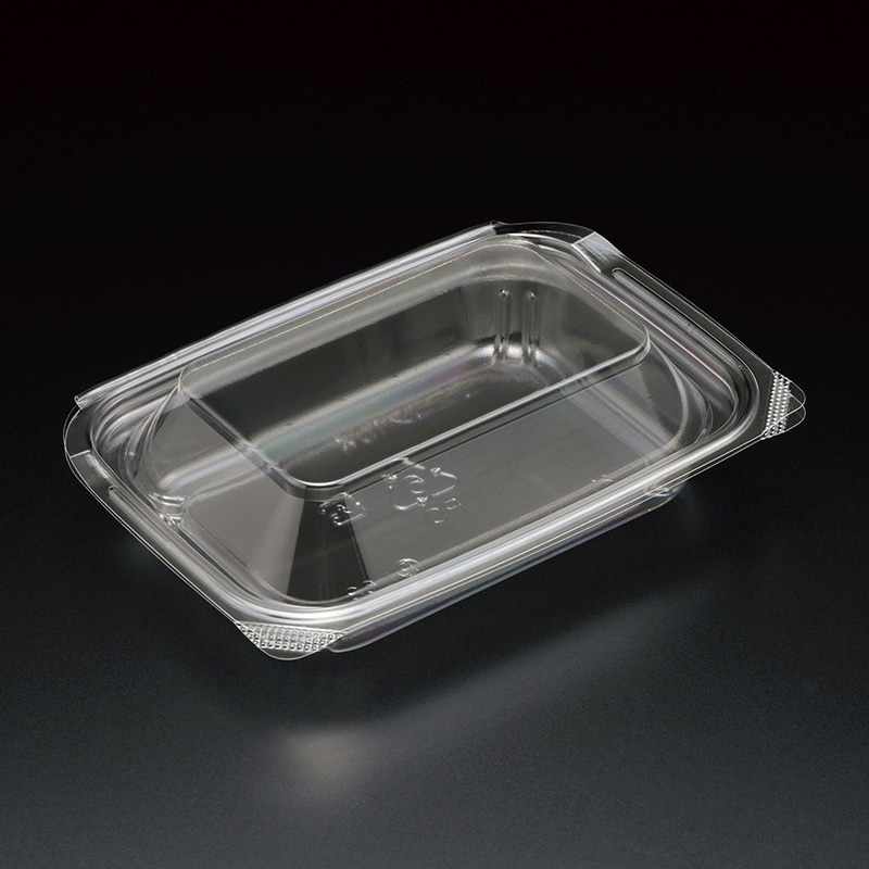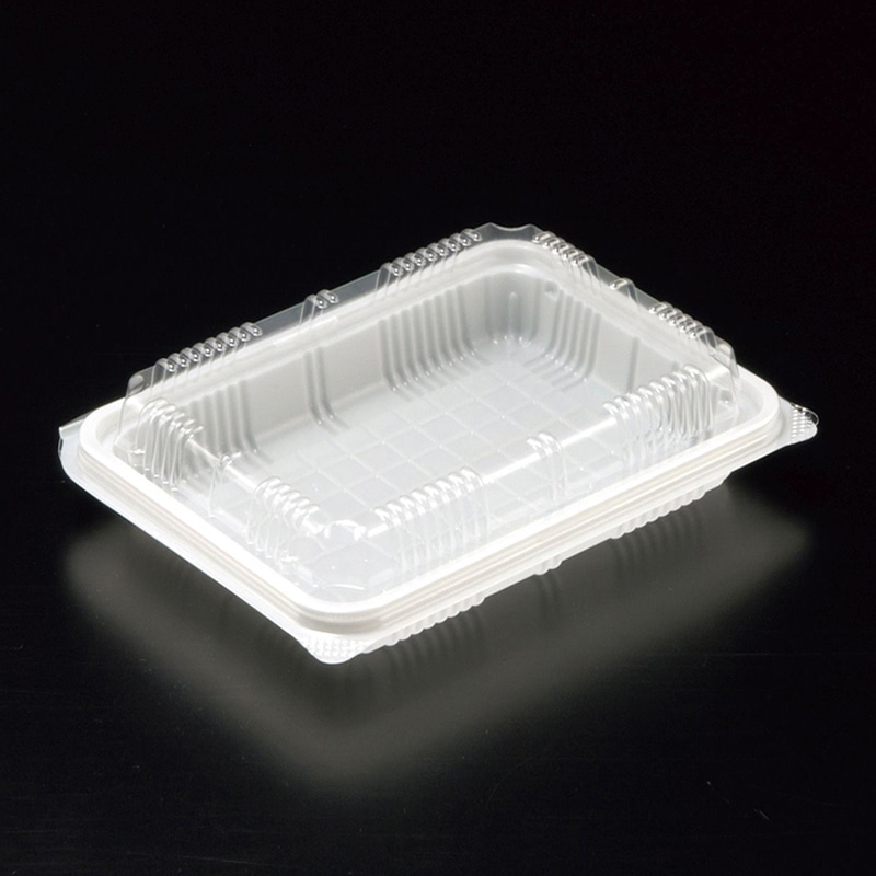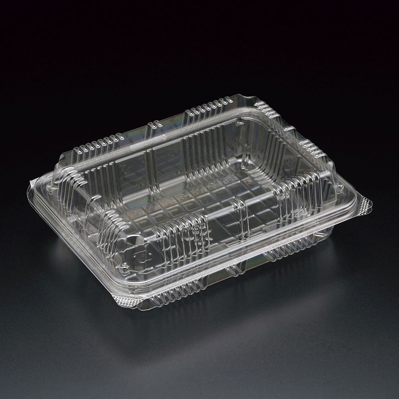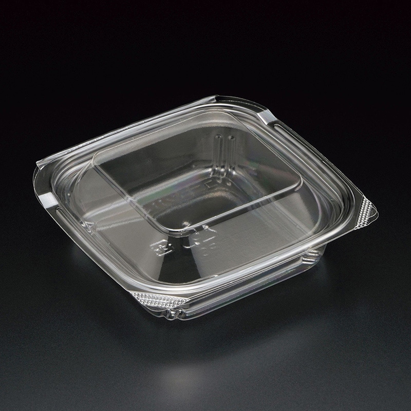 ハンバーガーやケーキなど高さのある商品に最適な容器です。様々な用途に使用できます。本体・フタ一体成型品です。●電子レンジ使用不可●オーブン使用不可●耐油性:なし●耐熱温度:80℃●入数:100個