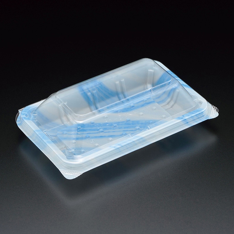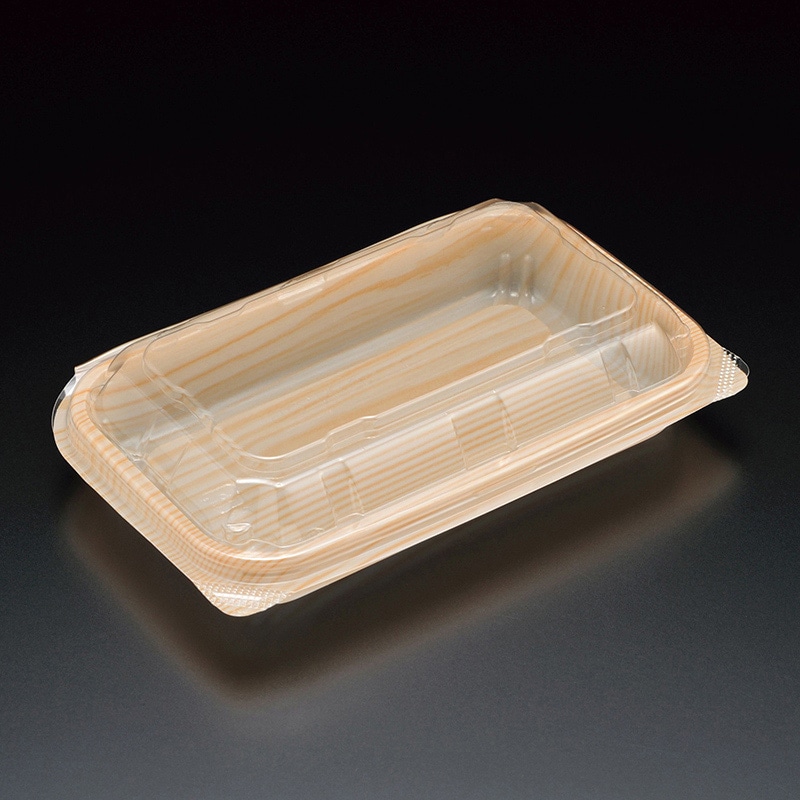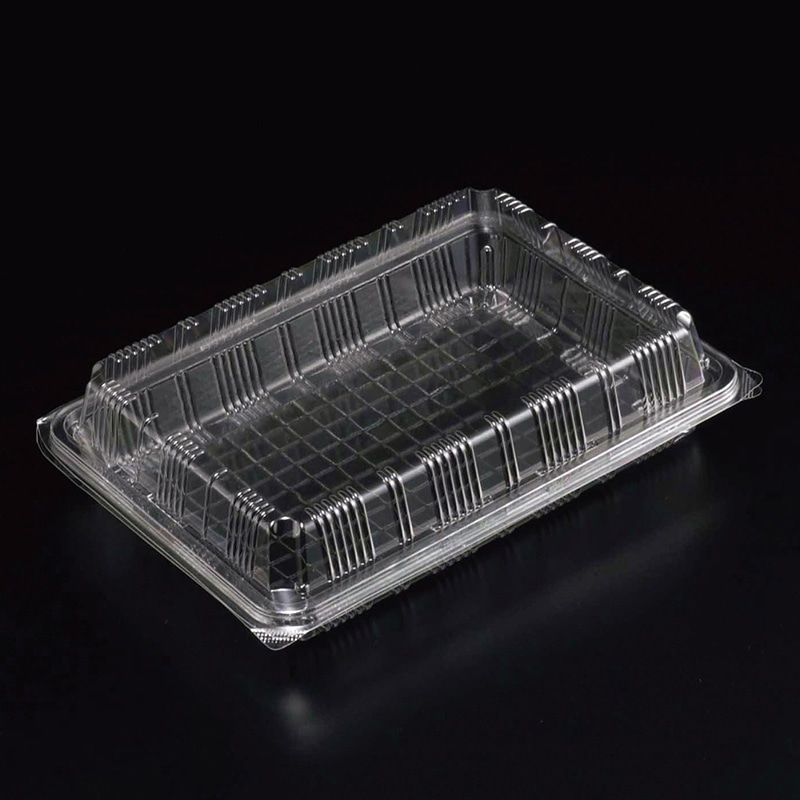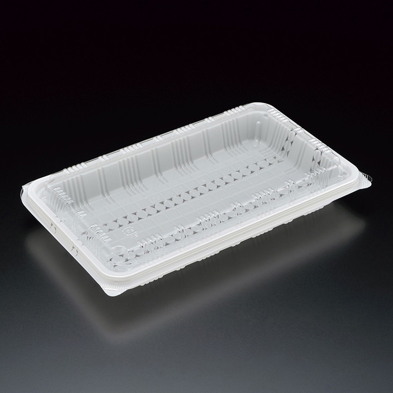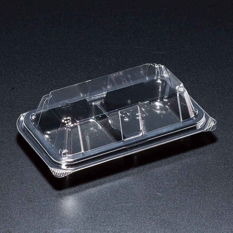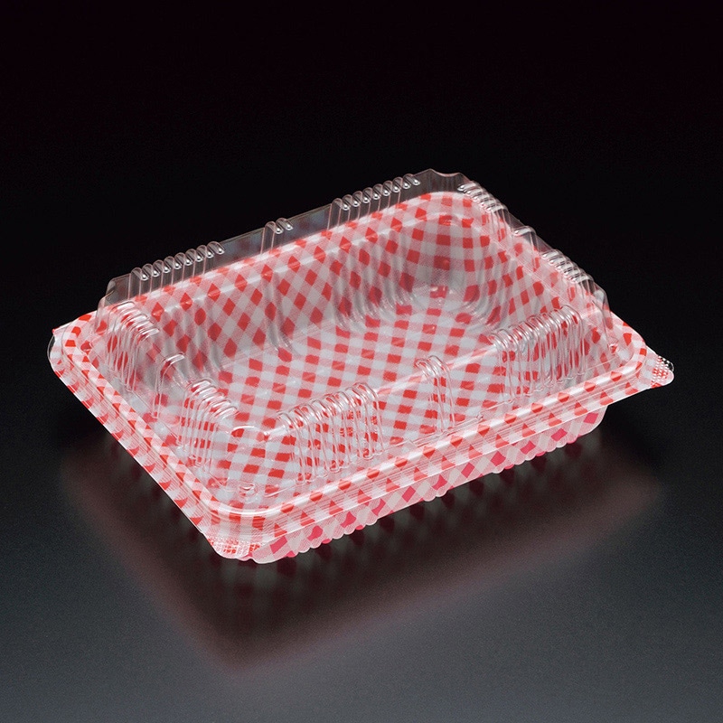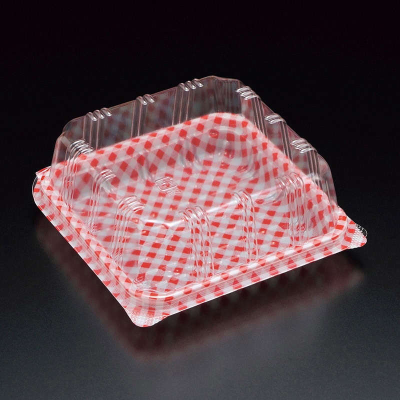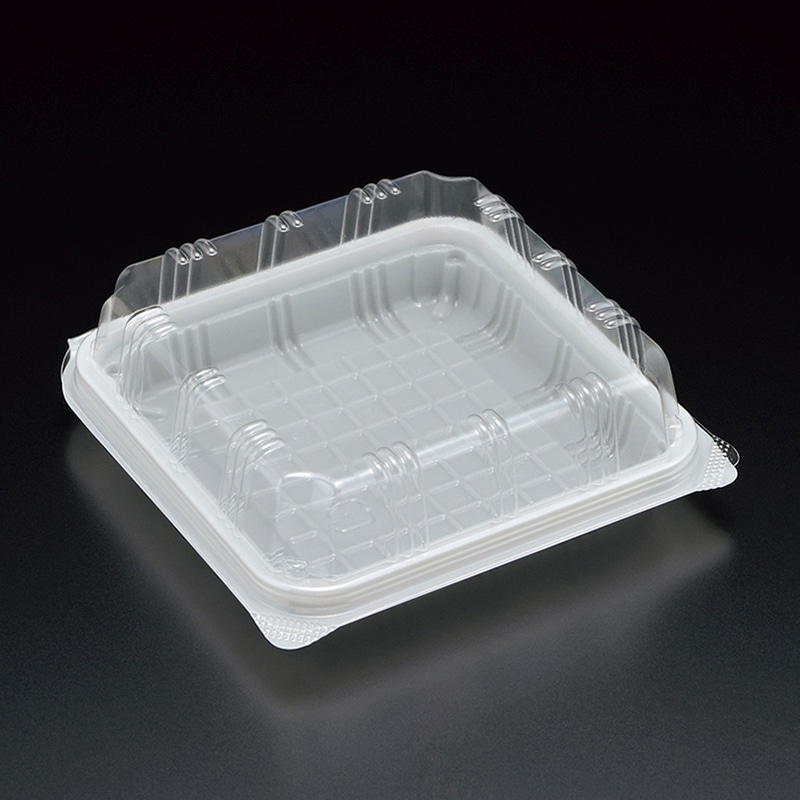 本体・蓋一体型の嵌合容器です。本体底面に滑り止めを意識したリブ形状。大福2~3個のサイズ感。和洋菓子、寿司、惣菜、珍味などに。ロースタックタイプ。●電子レンジ使用不可●オーブン使用不可●耐熱温度:90℃●入数:50枚