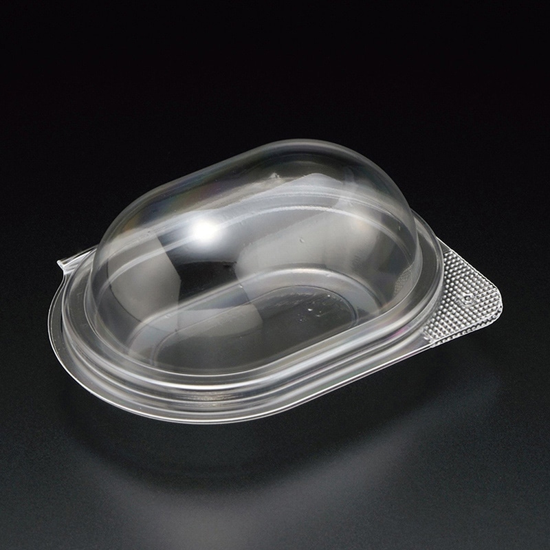本体・蓋一体型の嵌合ドーム型容器です。蓋をする手間を大幅に軽減します。和洋菓子向け。●電子レンジ使用不可●オーブン使用不可●耐熱温度:90℃●容量:70cc●入数:100枚