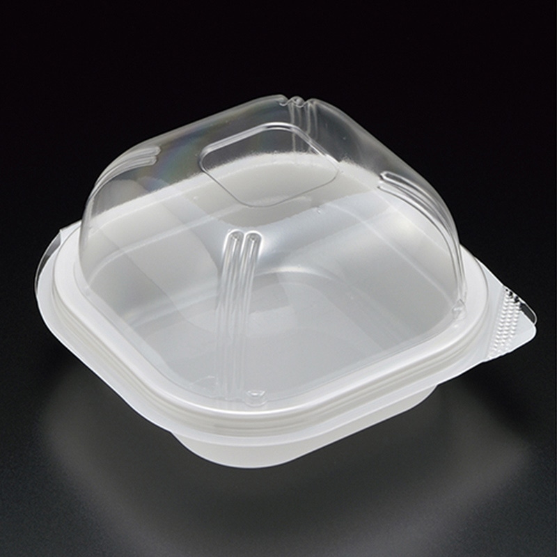 シュークリームやケーキなど高さのある商品に最適な容器です。様々な用途に使用できます。本体・フタ一体成型品です。●電子レンジ使用不可●オーブン使用不可●耐油性:なし●耐熱温度:80℃●入数:100個