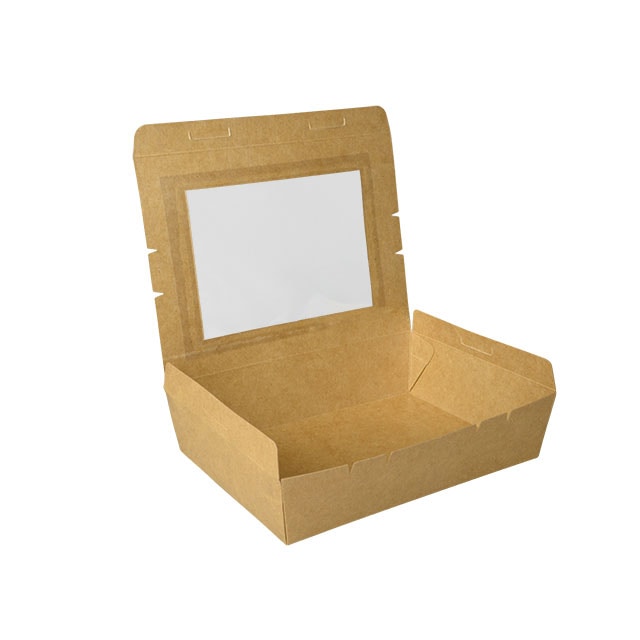 クラフト紙のフードパック。テイクアウトはもちろん、窓付で中身も見えるので、陳列販売にも対応できます。レンジ対応不可。窓フィルムは非防曇です。未晒しタイプ。●入数:50枚