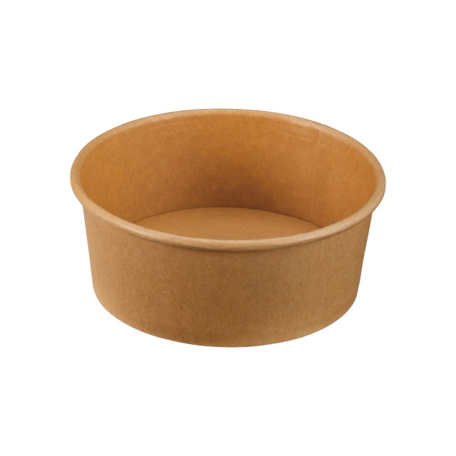クラフト紙のフードカップ。耐油、耐水対応。惣菜、弁当、スープと多岐にわたってご使用頂けます。レンジ対応不可。容量約1000cc。※蓋は別売り。開閉時の汁漏れにご注意下さい。未晒しタイプ。●入数:25枚