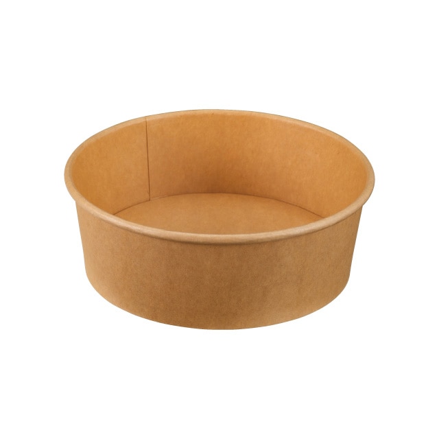 クラフト紙のフードカップ。耐油、耐水対応。惣菜、弁当、スープと多岐にわたってご使用頂けます。レンジ対応不可。容量約1500cc。※蓋は別売り。開閉時の汁漏れにご注意下さい。未晒しタイプ。●入数:25枚