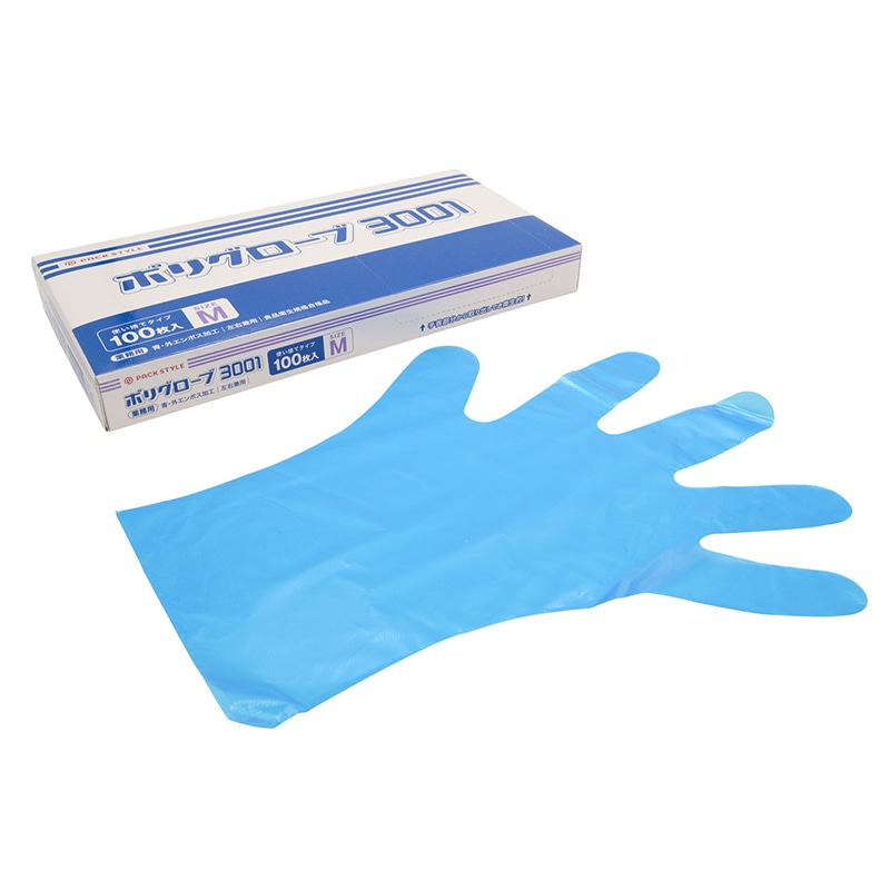 使い捨て手袋 ポリグローブ 3001 M 青 100枚/箱(ご注文単位60箱)【直送品】