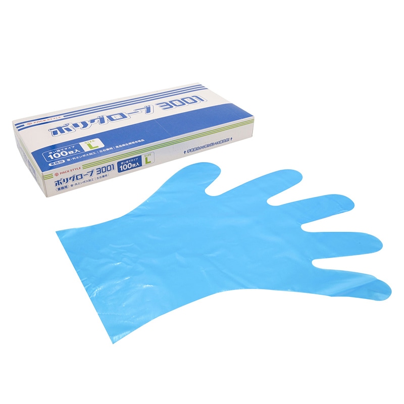 使い捨て手袋 ポリグローブ 3001 L 青 100枚/箱(ご注文単位60箱)【直送品】