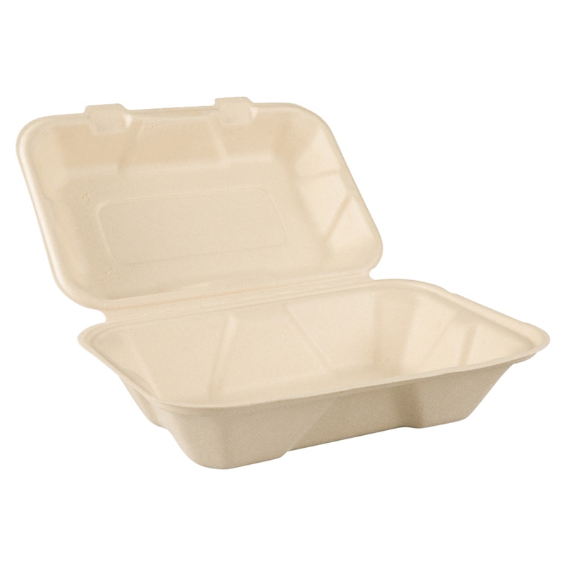 主原料のバガス(サトウキビの搾りかす)と竹の混合素材を使用したホワイト基調の業務用・使い捨てランチボックスです。お弁当・パスタ・サラダ・スイーツなどさまざまなメニューに対応。仕切りなし。※内側にコーティング加工がされていない為、米飯など粘り気のある内容物を直接入れると、材質の特性により食品に素材が付着する場合がございます。用途に応じて、クッキングペーパーやワックスペーパーを併用頂くと安心してご使用いただけます。●電子レンジ使用可●耐油性:あり●耐水性:あり●ごはんの量:約400g●入数:50枚