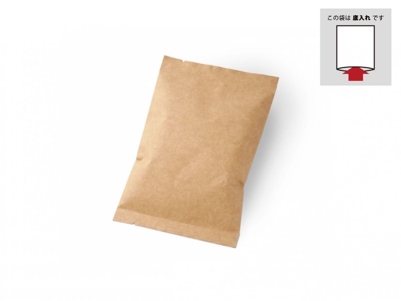 コーヒー豆が30~50g入るクラフト無地平袋です。ドリップバッグの個包装用外袋にお使いいただけます。上・背中シールの平袋で、上にノッチが付いています。この袋は底入れです。袋の口が下になります。袋の口は、ヒートシーラー(熱シーラー)で留めてください。袋表面にはクラフト紙を貼り合わせているので自然な手作り感が出ます。また、袋内面のアルミ蒸着フィルムが、紫外線を遮断して酸化を防ぎます。●コーヒーは煎り具合によって体積が大きく変わりますので、必ず封入できるわけではございません。