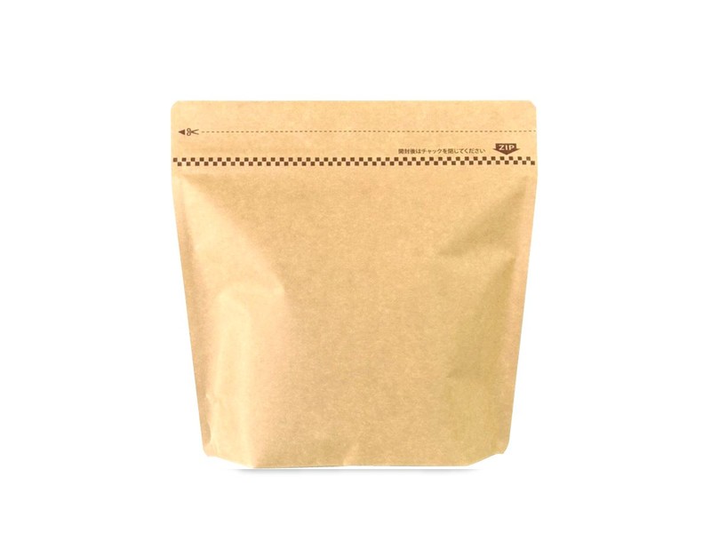 袋の裏面に特殊なアロマブレスシールを貼り付けた袋で、コーヒー豆から出る炭酸ガスを袋外に放出して豆の鮮度を保ちます。内面のアルミ蒸着フィルムが、紫外線を遮断して劣化を防ぎます。袋の表面にはクラフト紙を貼り合わせていますので、自然で温かい手作り感のある風合いです。開口部を従来よりかなり広口にしたことで、取り出しやすく計量スプーンを入れることも可能です。チャックが付いているので、開閉しやすい上に、保存にも最適です。●コーヒー(豆):約~250g(粉):約~300g●コーヒーは煎り具合や引き方によって体積が大きく変わりますので、必ず封入できるわけではございません。