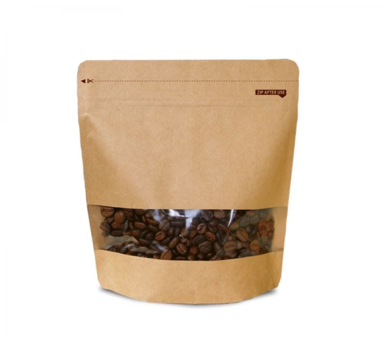 コーヒー豆が80~100g入る、チャック付きのクラフト無地袋です。チャック付。クラフト製で窓が開いています。立ちやすい底ガゼットです。袋表面にはクラフト紙を貼り合わせた自然で温かい手作り感のある風合いです。バリア性が高い素材を使用し、シリカゲルやエージレスに対応していますので、コーヒー以外にもご使用いただけます。●コーヒーは煎り具合や引き方によって体積が大きく変わりますので、必ず封入できるわけではございません。