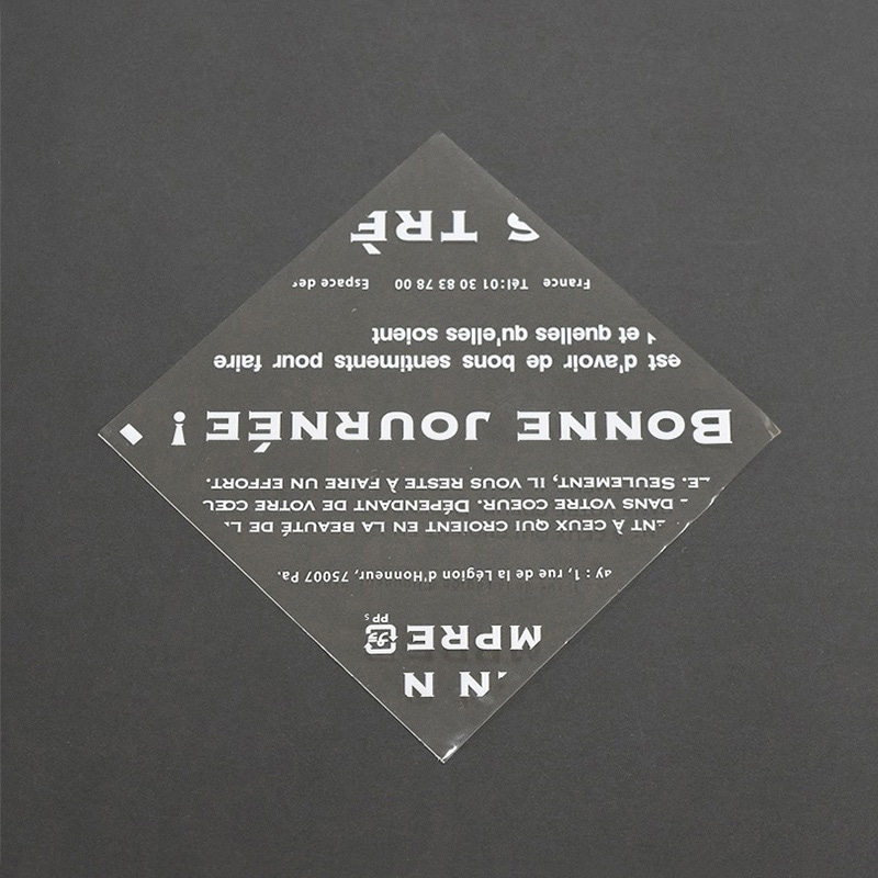 背面が茶色く着色されたOPPバーガー袋です。前面は透明フィルムにフランス語のデザインをあしらい、中身を見せつつ高級感を演出します。●入数:100枚