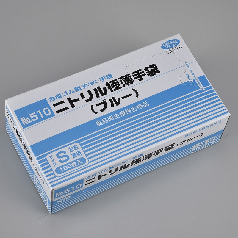 エブノ ニトリル極薄手袋 粉付 箱入 S 510 ブルー 100枚/箱(ご注文単位20箱)【直送品】