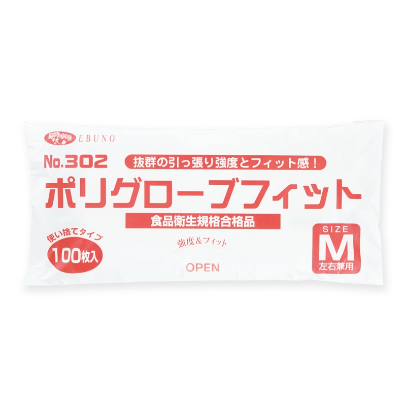 エブノ ポリ手袋 ポリグローブフィット M 袋入 302 半透明 100枚/袋(ご注文単位50袋)【直送品】