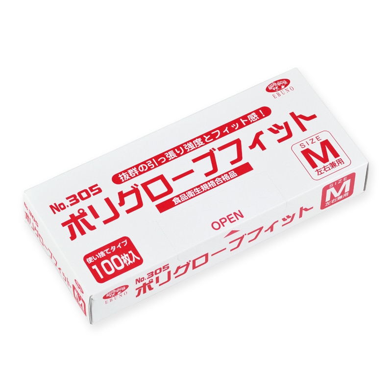 エブノ ポリ手袋 ポリグローブフィット M 箱入 305 半透明 100枚/箱(ご注文単位40箱)【直送品】