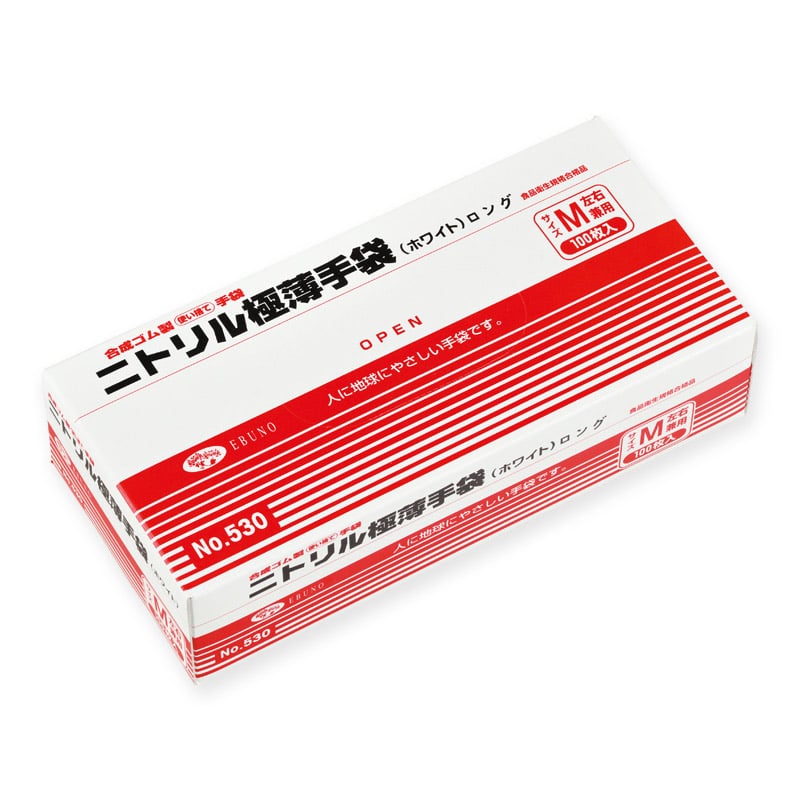エブノ ニトリル極薄ロング手袋 M 530 ホワイト 100枚/箱(ご注文単位20箱)【直送品】