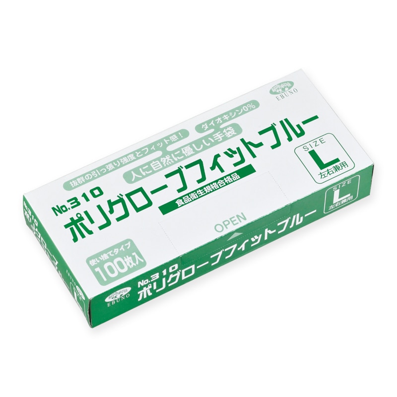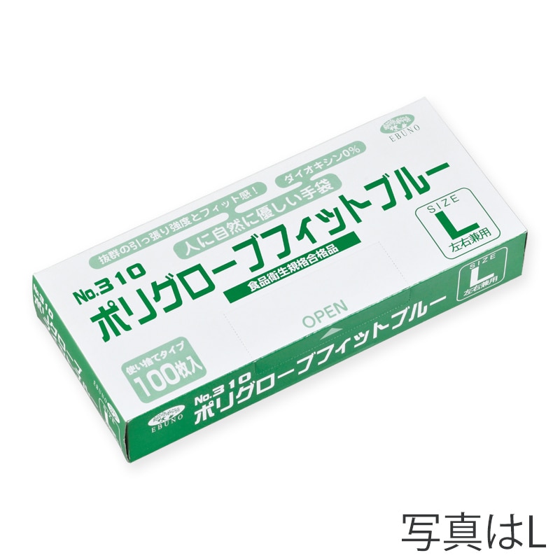 エブノ ポリ手袋 ポリグローブフィット L 箱入 310 ブルー 100枚/箱(ご注文単位40箱)【直送品】