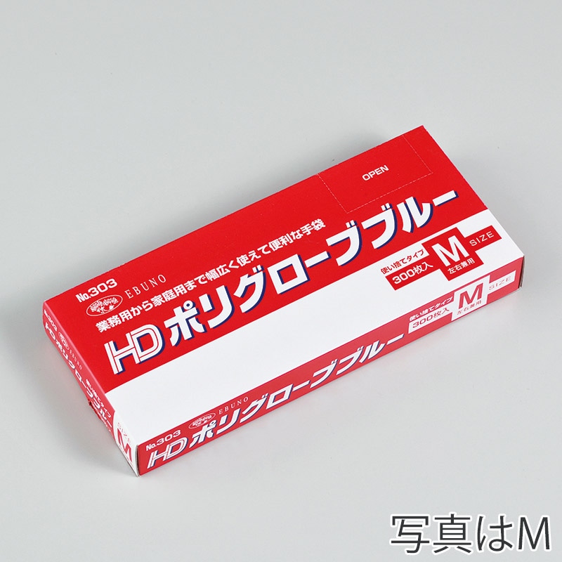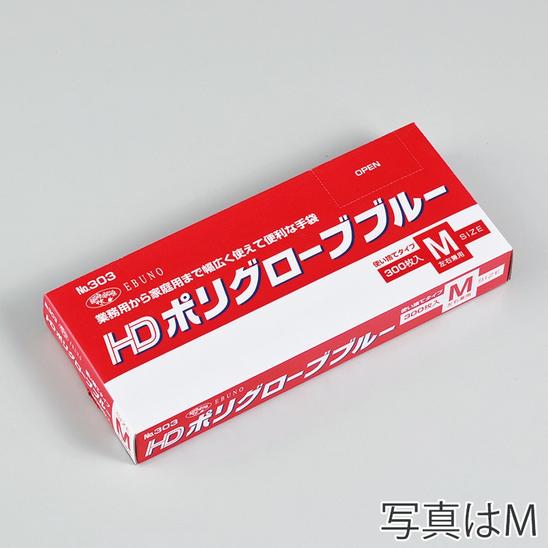 エブノ HDポリグローブ 箱入 M 303 ブルー 300枚/箱(ご注文単位20箱)【直送品】
