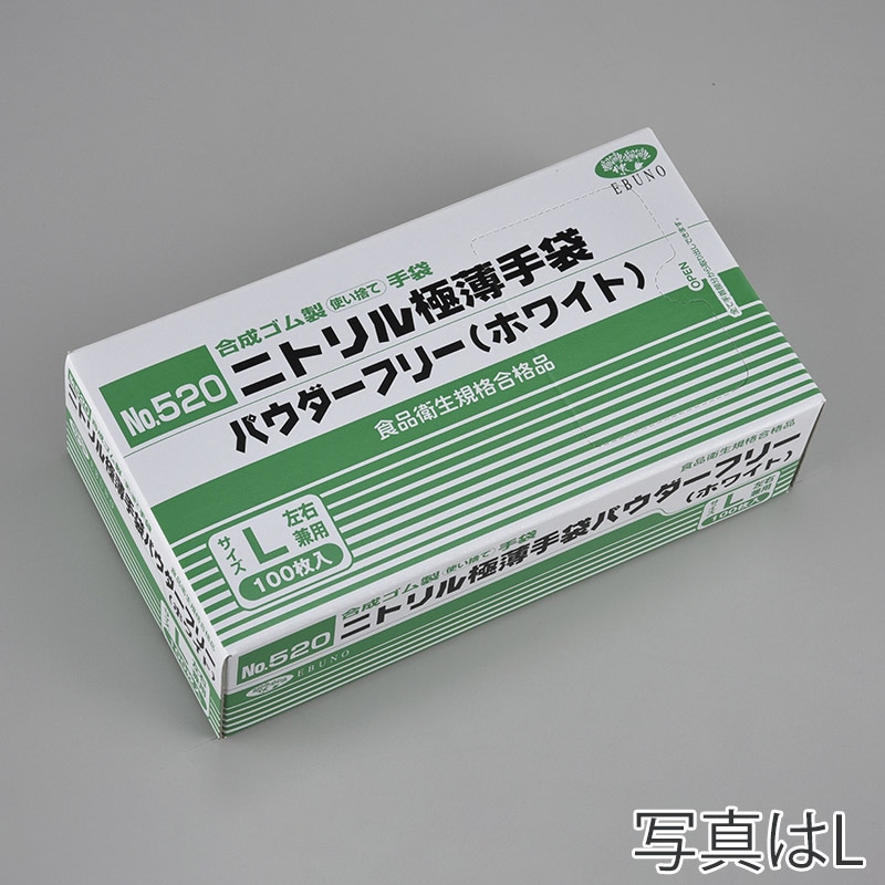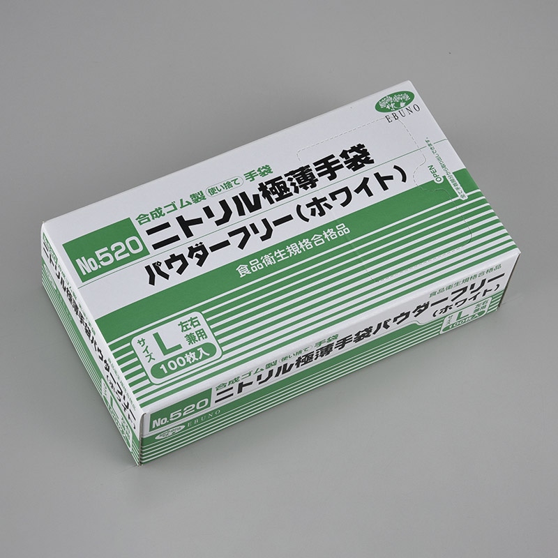 エブノ ニトリル極薄手袋 粉付 箱入 L 510 ホワイト 100枚/箱(ご注文単位20箱)【直送品】