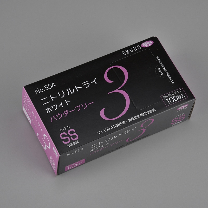 エブノ ニトリル極薄手袋 粉付 箱入 SS 510 ホワイト 100枚/箱(ご注文単位20箱)【直送品】