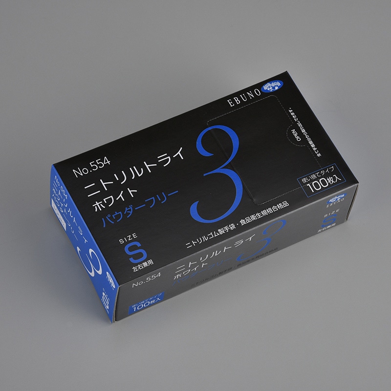 エブノ ニトリル薄手手袋前指タイプ パウダーフリー S 540 ホワイト 20組/箱(ご注文単位12箱)【直送品】