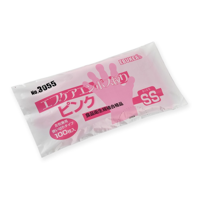 型押しエンボス加工でソフトな風合いのポリ手袋です。食品衛生法適合商品。●厚み:20ミクロン●入数:100枚