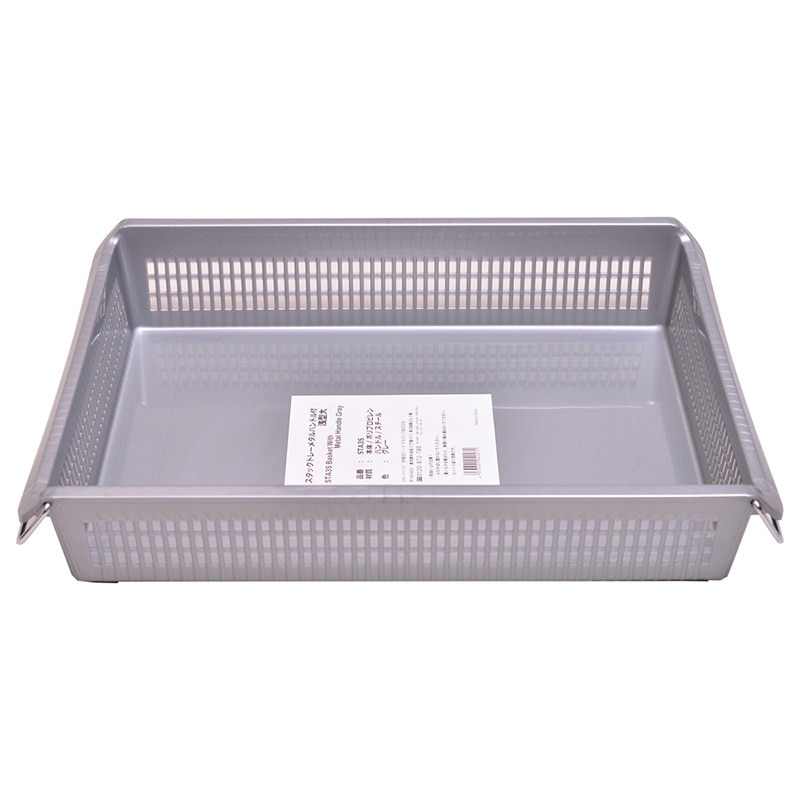 伊藤忠リーテイルリンク 収納ボックス スタックトレー メタルハンドル付 浅型 小 グレー V676 1個(ご注文単位12個)【直送品】