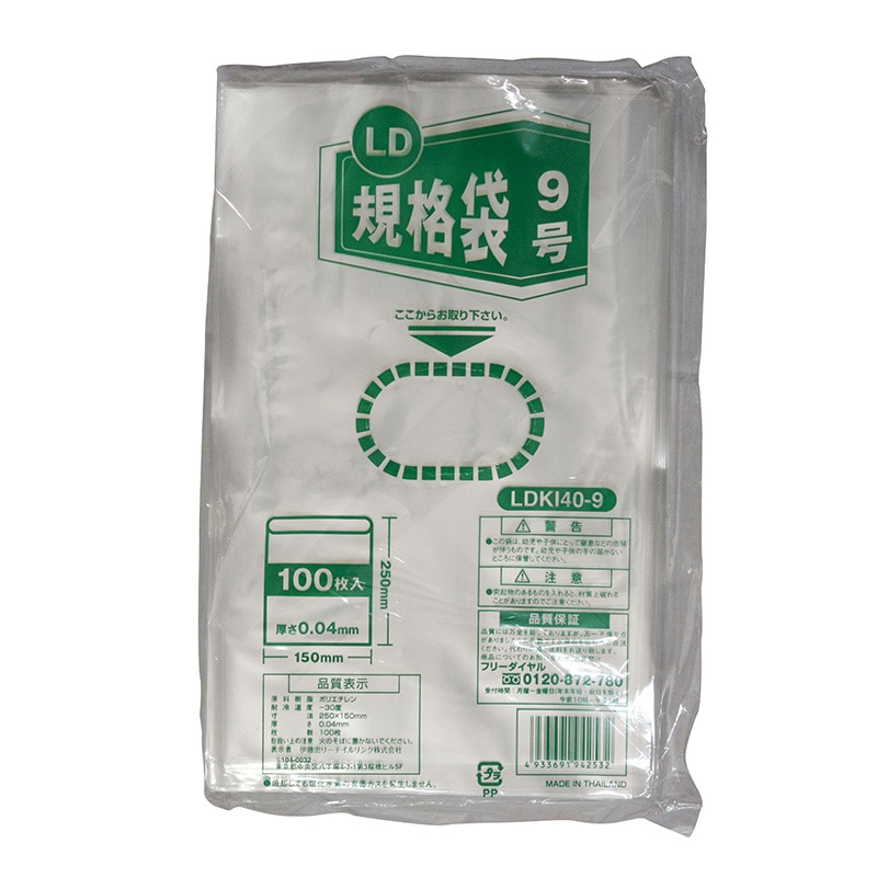 伊藤忠リーテイルリンク ポリ袋 LD規格袋 9号 0.04mm 100枚入 LDKI40-9 1パック(ご注文単位50パック)【直送品】