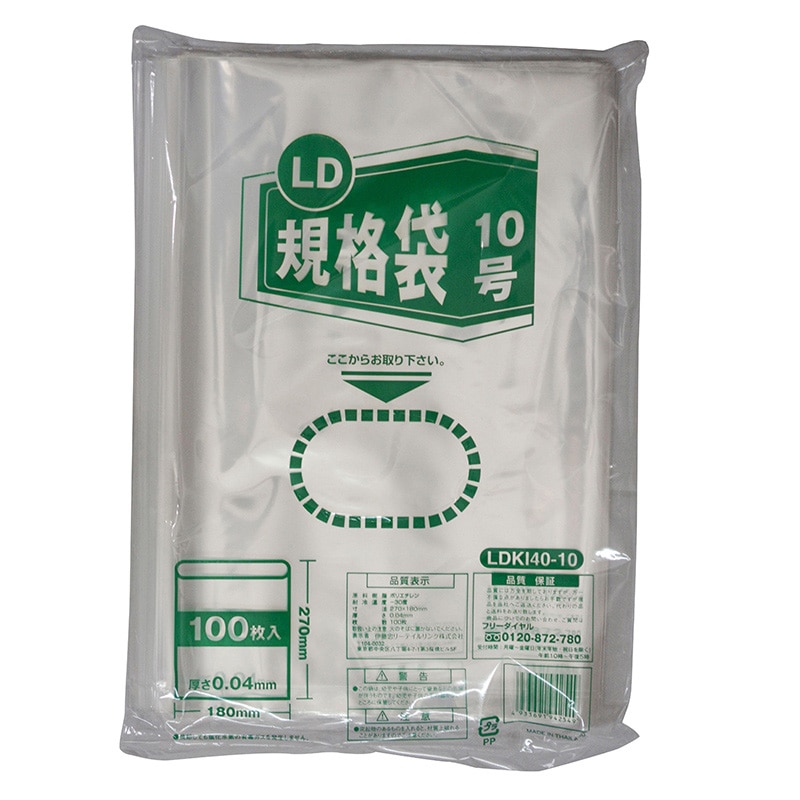 伊藤忠リーテイルリンク ポリ袋 LD規格袋 10号 0.04mm 100枚入 LDKI40-10 1パック(ご注文単位50パック)【直送品】