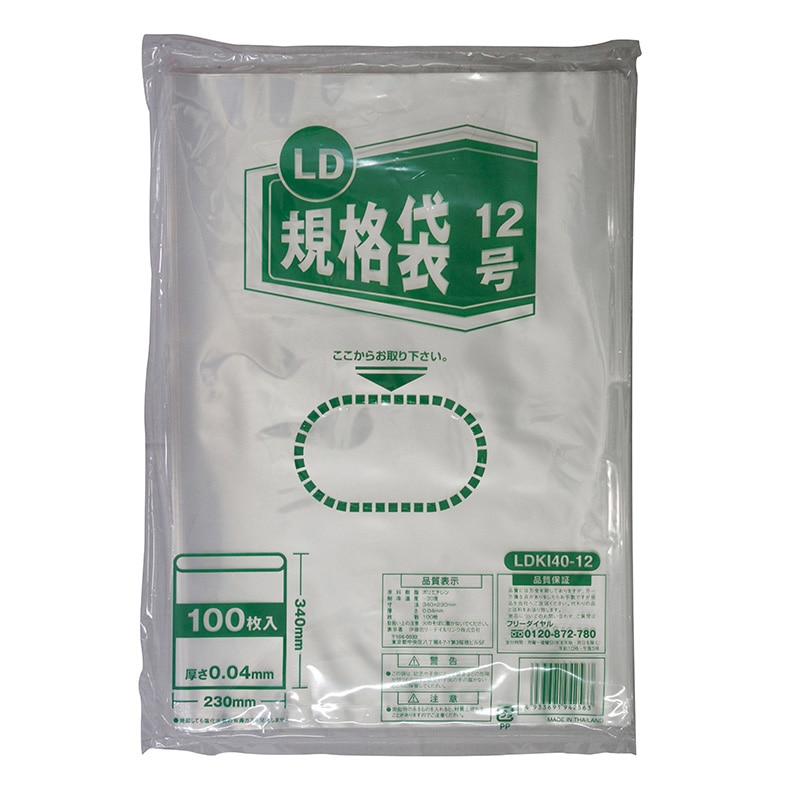 伊藤忠リーテイルリンク ポリ袋 LD規格袋 12号 0.04mm 100枚入 LDKI40-12 1パック(ご注文単位30パック)【直送品】