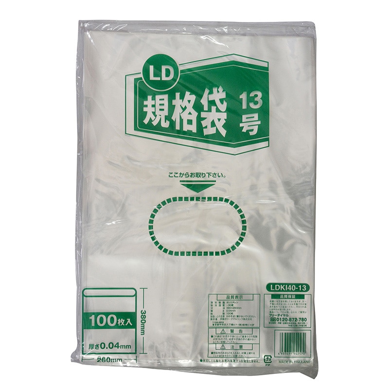伊藤忠リーテイルリンク ポリ袋 LD規格袋 13号 0.04mm 100枚入 LDKI40-13 1パック(ご注文単位25パック)【直送品】