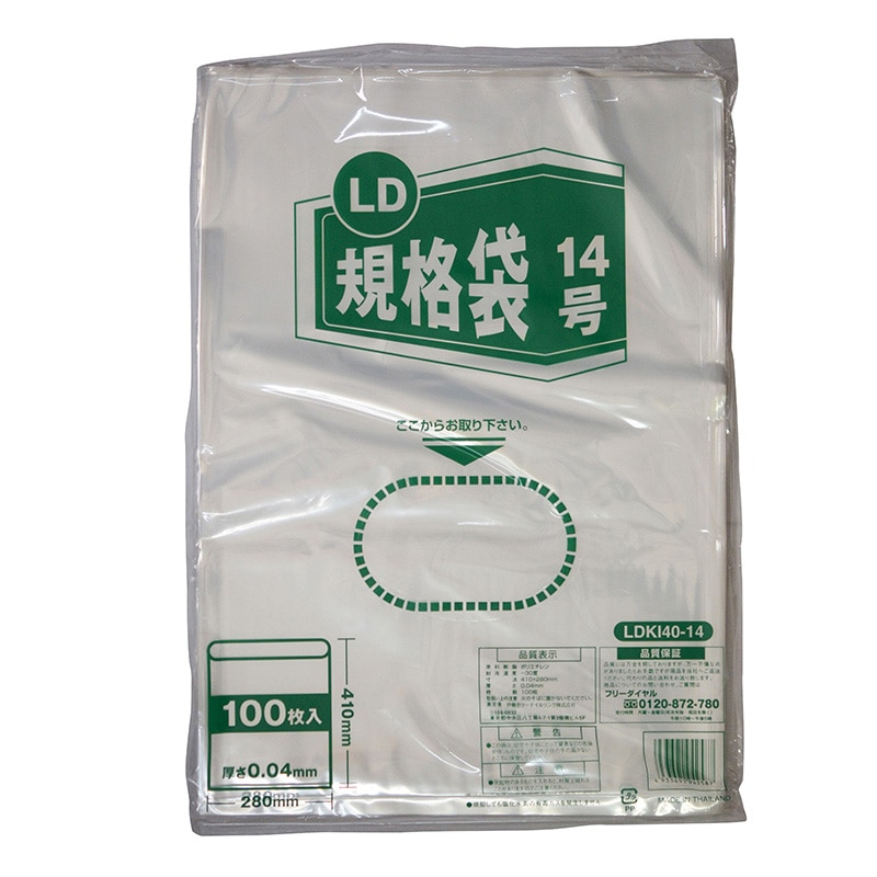 伊藤忠リーテイルリンク ポリ袋 LD規格袋 14号 0.04mm 100枚入 LDKI40-14 1パック(ご注文単位25パック)【直送品】