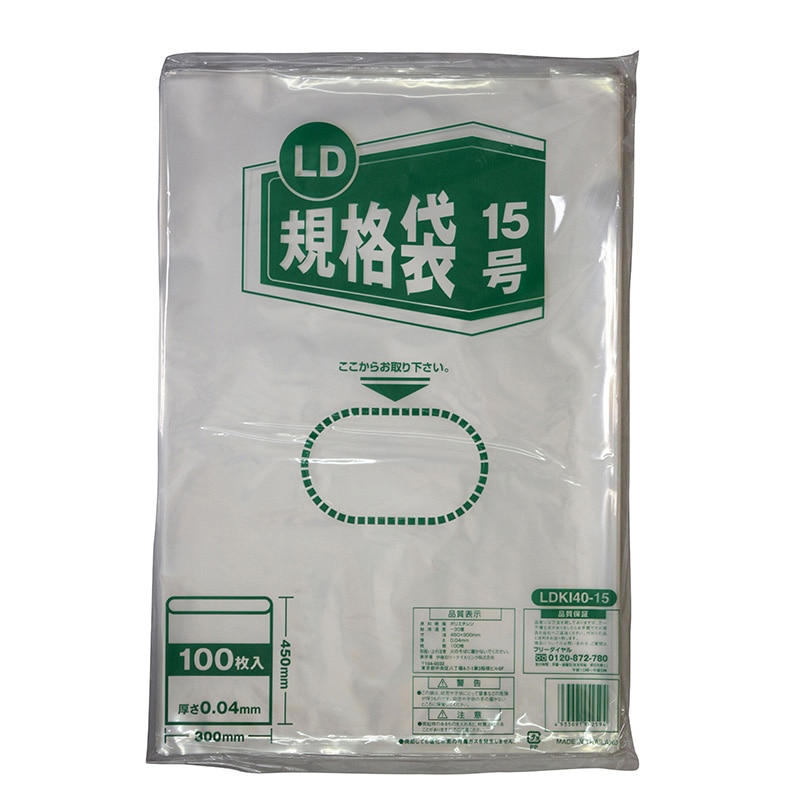 伊藤忠リーテイルリンク ポリ袋 LD規格袋 15号 0.04mm 100枚入 LDKI40-15 1パック(ご注文単位15パック)【直送品】
