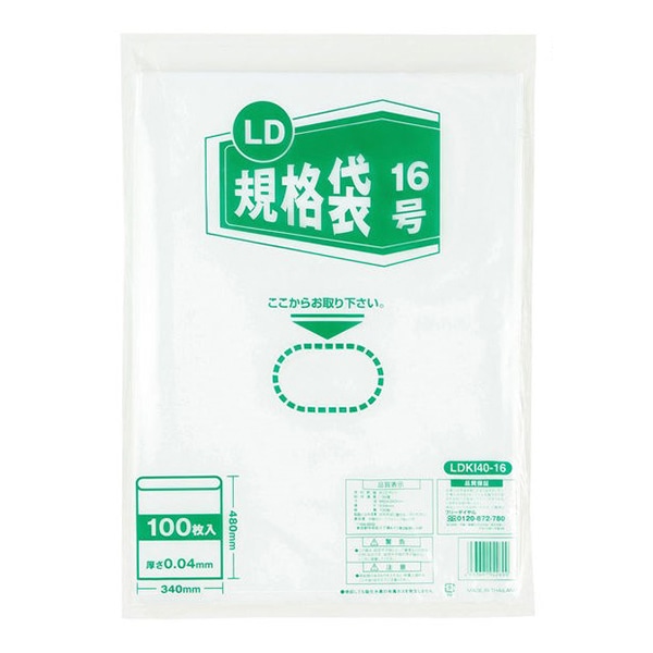 伊藤忠リーテイルリンク ポリ袋 LD規格袋 16号 0.04mm 100枚入 LDKI40-16 1パック(ご注文単位15パック)【直送品】