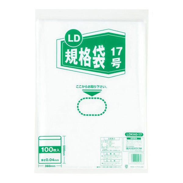 伊藤忠リーテイルリンク ポリ袋 LD規格袋 17号 0.04mm 100枚入 LDKI40-17 1パック(ご注文単位15パック)【直送品】