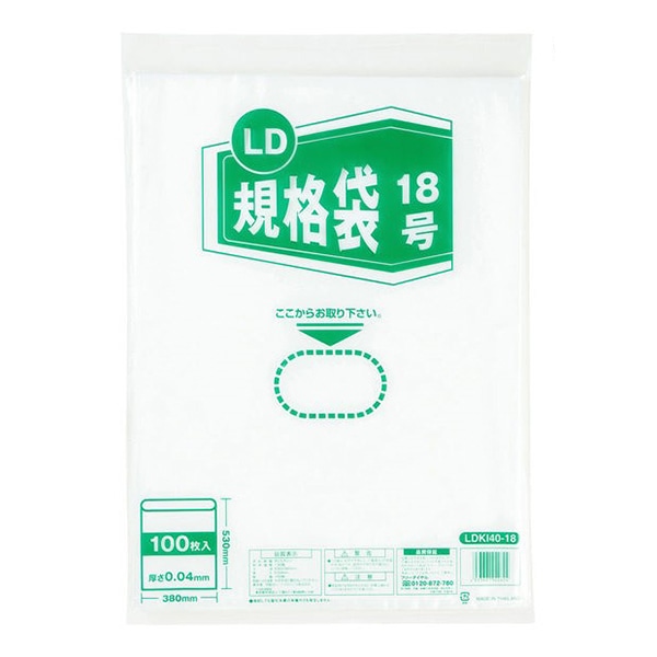 伊藤忠リーテイルリンク ポリ袋 LD規格袋 18号 0.04mm 100枚入 LDKI40-18 1パック(ご注文単位15パック)【直送品】