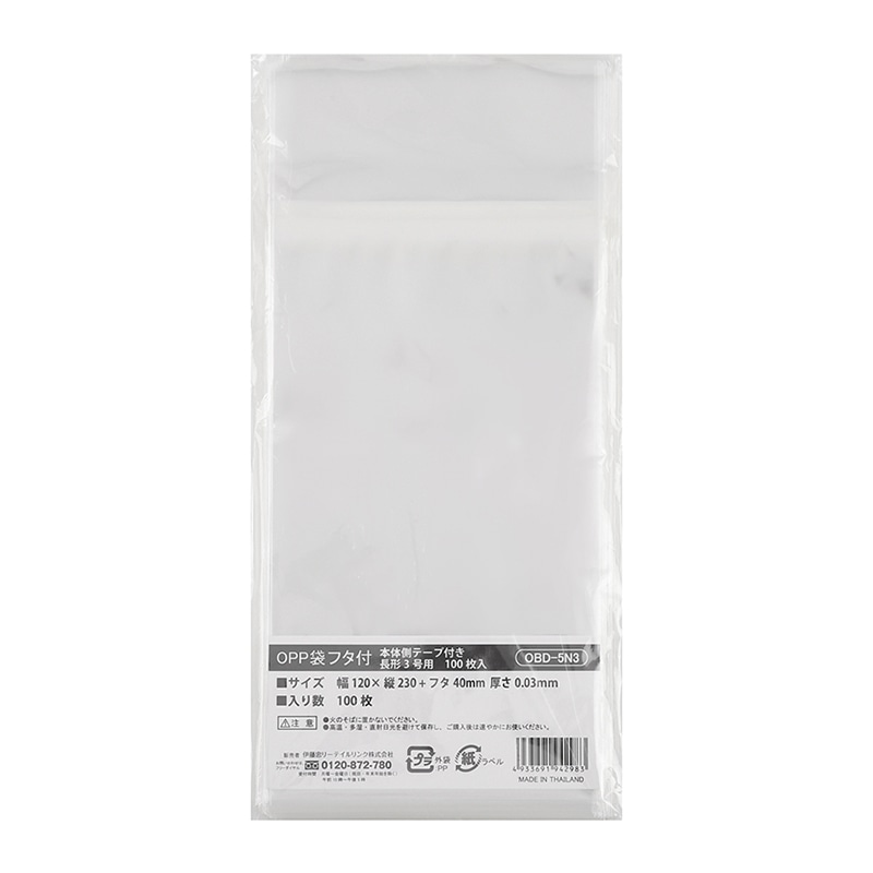 伊藤忠リーテイルリンク OPP袋 フタ付 本体側テープ付 長形3号用 100枚入 OBD-5N3 1パック(ご注文単位100パック)【直送品】