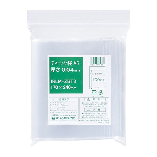 伊藤忠リーテイルリンク ポリ袋 チャック袋 A5 0.04mm 100枚入 IRLM-ZBT8 1パック(ご注文単位35パック)【直送品】