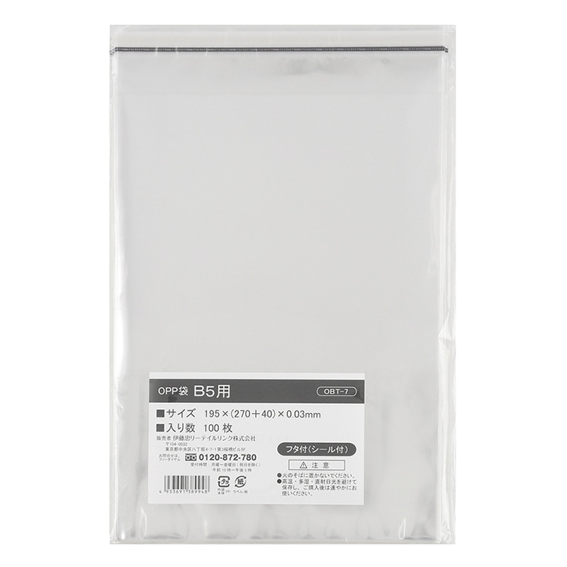 伊藤忠リーテイルリンク OPP袋 フタ付 B5用 100枚入 OBT-7 1パック(ご注文単位50パック)【直送品】