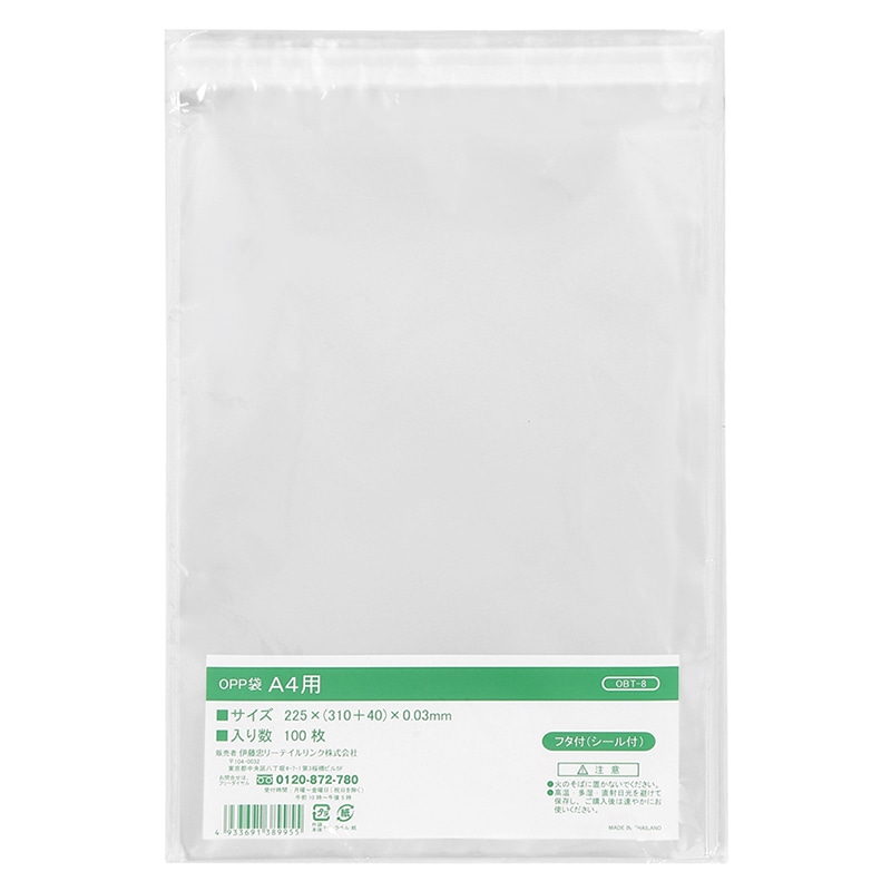 伊藤忠リーテイルリンク OPP袋 フタ付 A4用 100枚入 OBT-8 1パック(ご注文単位40パック)【直送品】