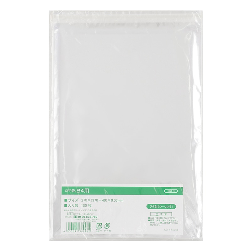 伊藤忠リーテイルリンク OPP袋 フタ付 B4用 100枚入 OBT-9 1パック(ご注文単位20パック)【直送品】