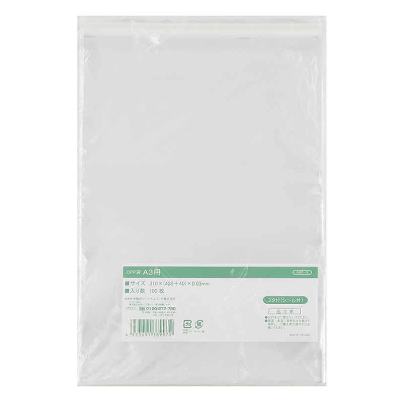 伊藤忠リーテイルリンク OPP袋 フタ付 A3用 100枚入 OBT-10 1パック(ご注文単位20パック)【直送品】