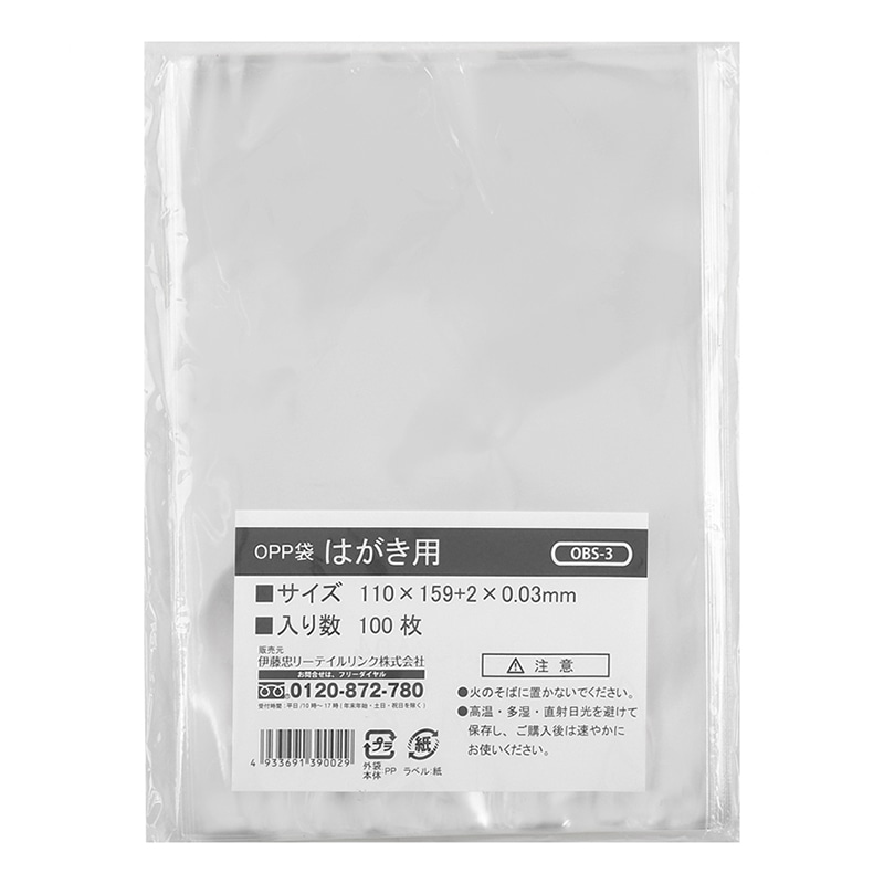伊藤忠リーテイルリンク OPP袋 はがき用 100枚入 OBS-3 1パック(ご注文単位200パック)【直送品】