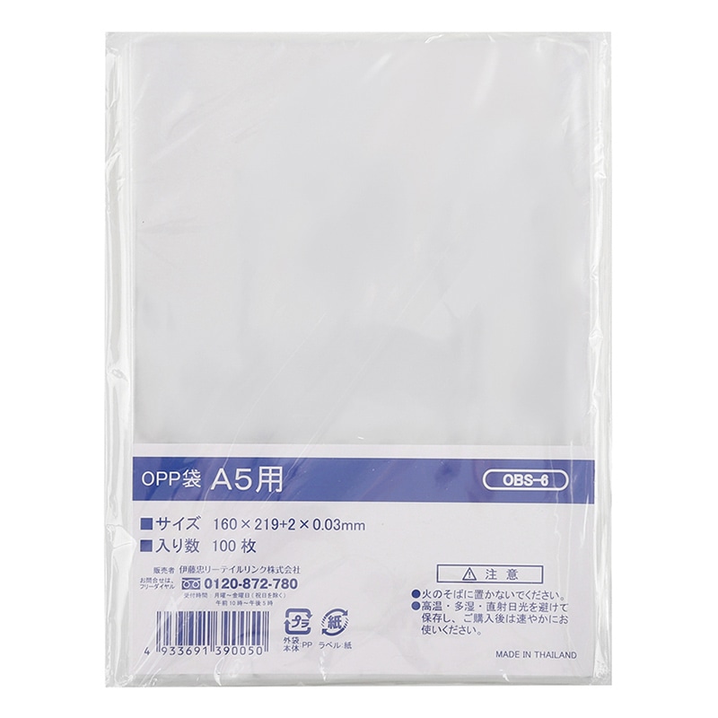 伊藤忠リーテイルリンク OPP袋 A5用 100枚入 OBS-6 1パック(ご注文単位50パック)【直送品】