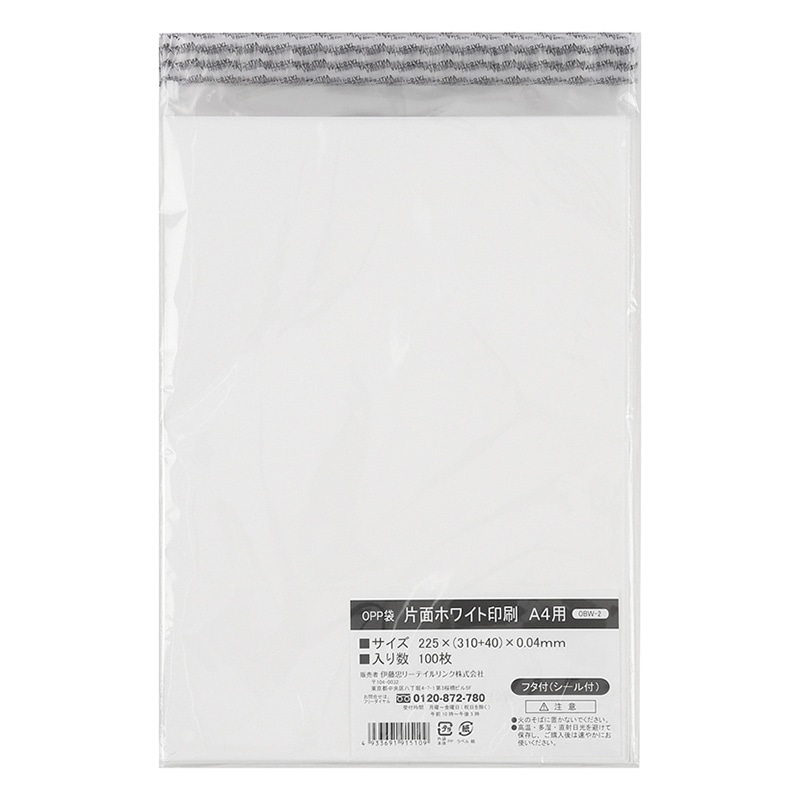 伊藤忠リーテイルリンク OPP袋 片面ホワイト印刷 シール付 A4用 100枚入 OBW-2 1パック(ご注文単位20パック)【直送品】
