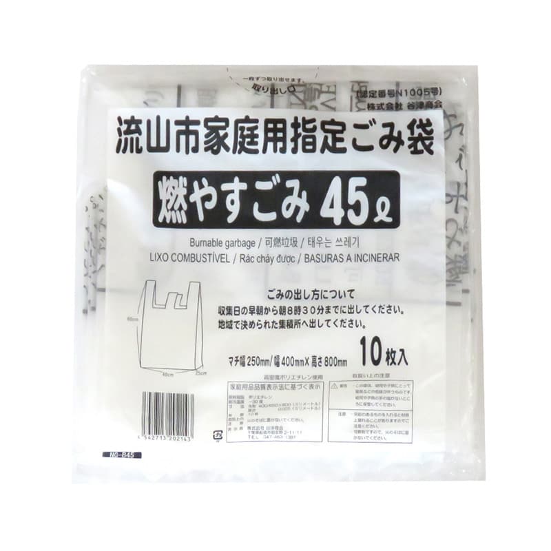 谷津商会 流山市家庭用指定ごみ袋 燃やすごみ用 レジ袋タイプ 45L 10枚入 NG-B45 1束(ご注文単位50束)【直送品】