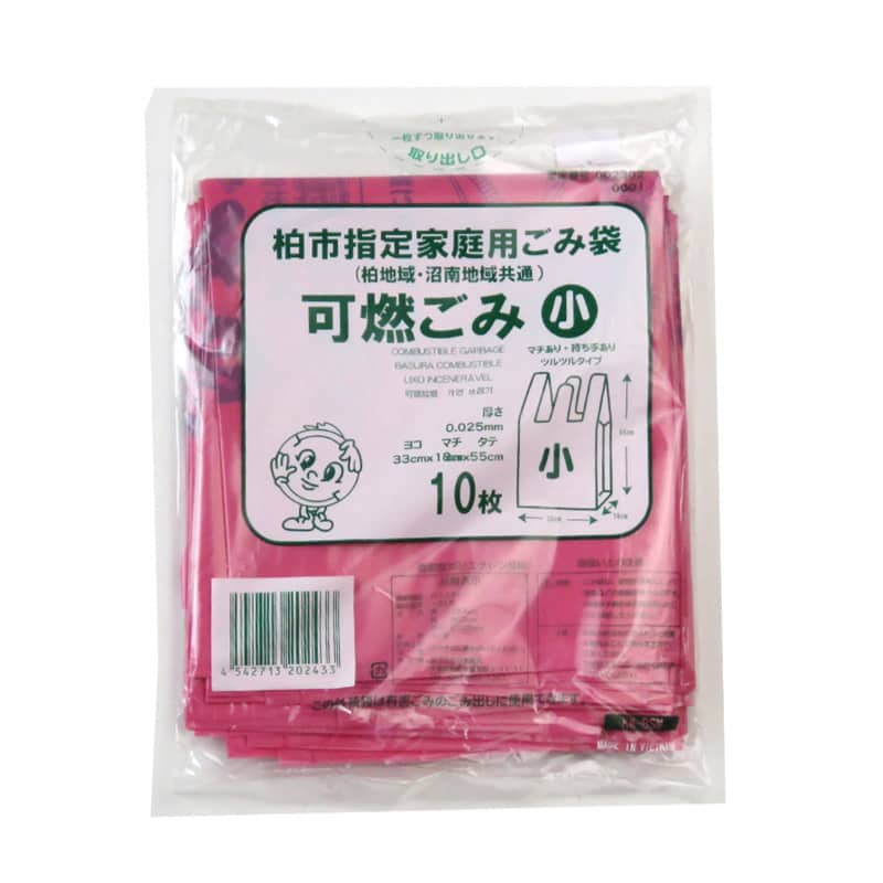 柏市指定、家庭用ごみ袋です。可燃ごみ用ピンク色、小サイズ。柏地域・沼南地域共通。パッケージの外装袋は有害ごみのごみ出しに使用できます。口を結びやすいレジ袋タイプ。●入数:10枚