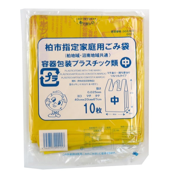 柏市指定、家庭用ごみ袋です。容器包装プラスチック用黄色、中サイズ。柏地域・沼南地域共通。パッケージの外装袋は有害ごみのごみ出しに使用できます。口を結びやすいレジ袋タイプ。●入数:10枚