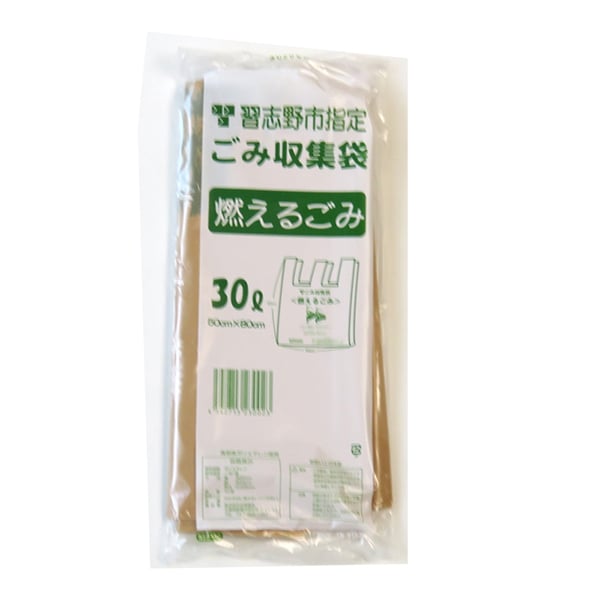 習志野市指定のごみ収集袋です。燃えるごみ用ベージュ色、30Lサイズ。口を結びやすいU型タイプ。●入数:20枚