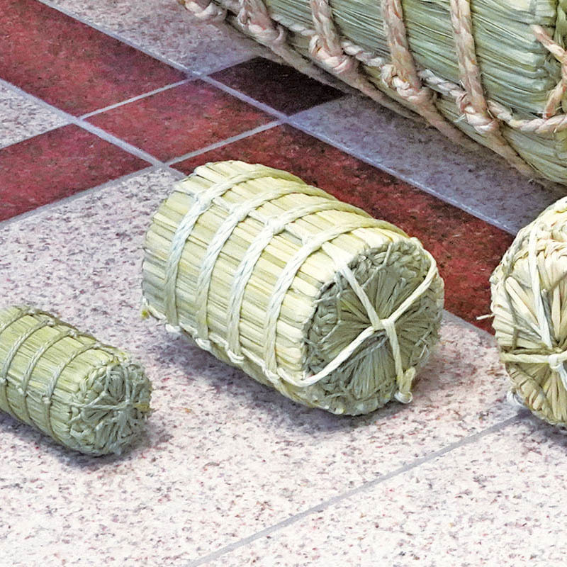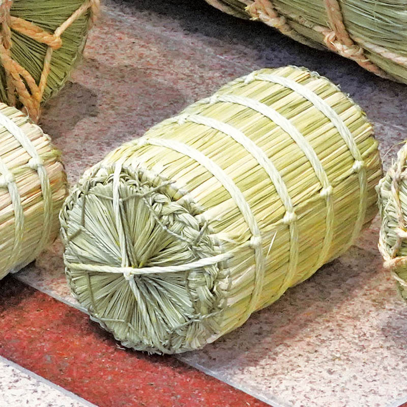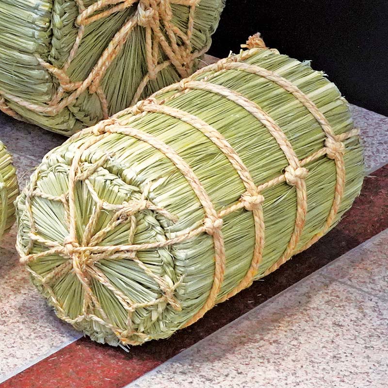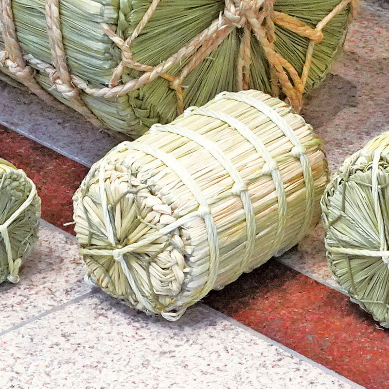 米は入っておりません。刈取り後直ぐに強制乾燥した稲わらを使用しております。わらは青い状態より徐々に黄化していきます。