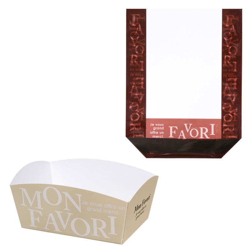 フィルムの透明スタンド袋と紙トレーのセット商品です。透明袋は幅広のマチにブラウンの印刷で高級感があり、焼菓子ギフトにも最適です。脱酸素剤、乾燥剤使用不可。●入数:200セット