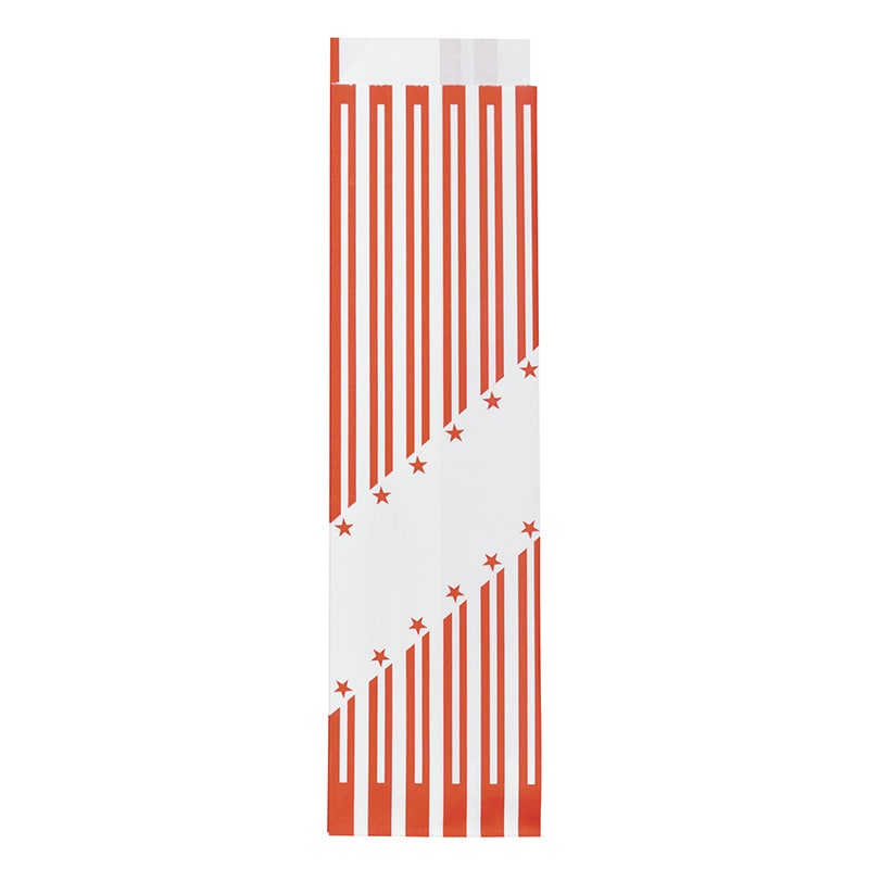 耐油紙を使用したマチ付きの片開き袋です。ホットドック、フランクフルトなどに最適です。●入数:4000枚